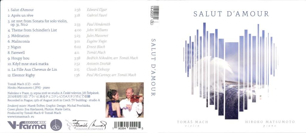 1. Salut d''Amour, Op. 12 2. Trois mélodies, Op. 7: I. Apres un reve 3. Violin Sonata Op. 31, No. 2: I. Leicht bewegte Viertel 4. Schindler’s List: Theme 5. Thais: Méditation 6. Sonata for Solo Violin, Op. 27, No. 2: II. Malinconia 7. Baal Shem Suite, 3 Pictures of Chassidic Life for Violin and Piano: II. Nigun 8. Farewell 9. Houpy Hou 10. Gypsy Songs, Op. 55: IV. Songs My Mother Taught Me 11. Préludes, Book I, L. 117: VII. La fille aux cheveux de lin 12. Eleanor Rigby