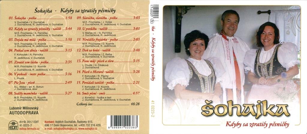 01 - Šohajka - Polka 02 - Kdyby se ztratily pěsničky - Valčík 03 - Dojdu má milá - Polka 04 - Potkal jsem děvča - Valčík 05 - Ztatil sem lásku - Polka 06 - V pohodě - Instr.Polka 07 - Pie Jesu - Píseň 08 - Seděly maměnky - Valčík 09 - Slavíčku slavíčku - POlka 10 - U potůčku - Valčík 11 - Nevěděla frajárka - Polka 12 - Deň sa krátí - Valčík 13 - Pane můj - Píseň a slow 14 - Píseň o Moravě - Valčík 15 - Povídali tatíček - Polka 16 - Směs písní - Směs