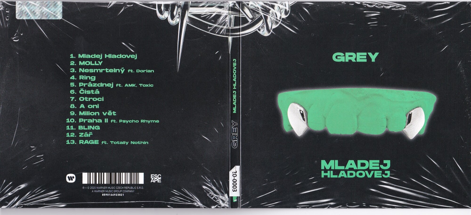 Těžko byste u nás hledali dalšího interpreta, jehož kariéra zaznamenala od začátku roku 2020 podobně strmý růst. Osmnáctiletý Grey je senzací české rapové scény. Na začátku roku ho mezi nejžádanější domácí umělce katapultoval singl LaLaLa, za nímž následovaly další úspěšně tracky Čistá a Prázdnej. Debutové album talentovaného mladíka. Grey na něm čerpá z aktuálního dění na trapové scéně i soundcloud rapu, ale nevyhýbá se ani experimentům, ať už je to psychedelie ve skladbě MOLLY nebo tvrdá rocková hudba, na které vyrůstal. Nekompromisní kytarový riff zdobí závěrečný opus RAGE. Mezi hosty najdete populárního Doriana, dále jsou tu Greyovi kumpáni z labelu Mayday či Psycho Rhyme z Blakkwoodu. Tracklist : 1. Mladej hladovej 2. Molly 3. Nesmrtelný 4. Ring 5. Prázdnej 6. Čistá 7. Otroci 8. A oni 9. Milion vět 10. Praha II 11. Bling 12. Zář 13. Rage