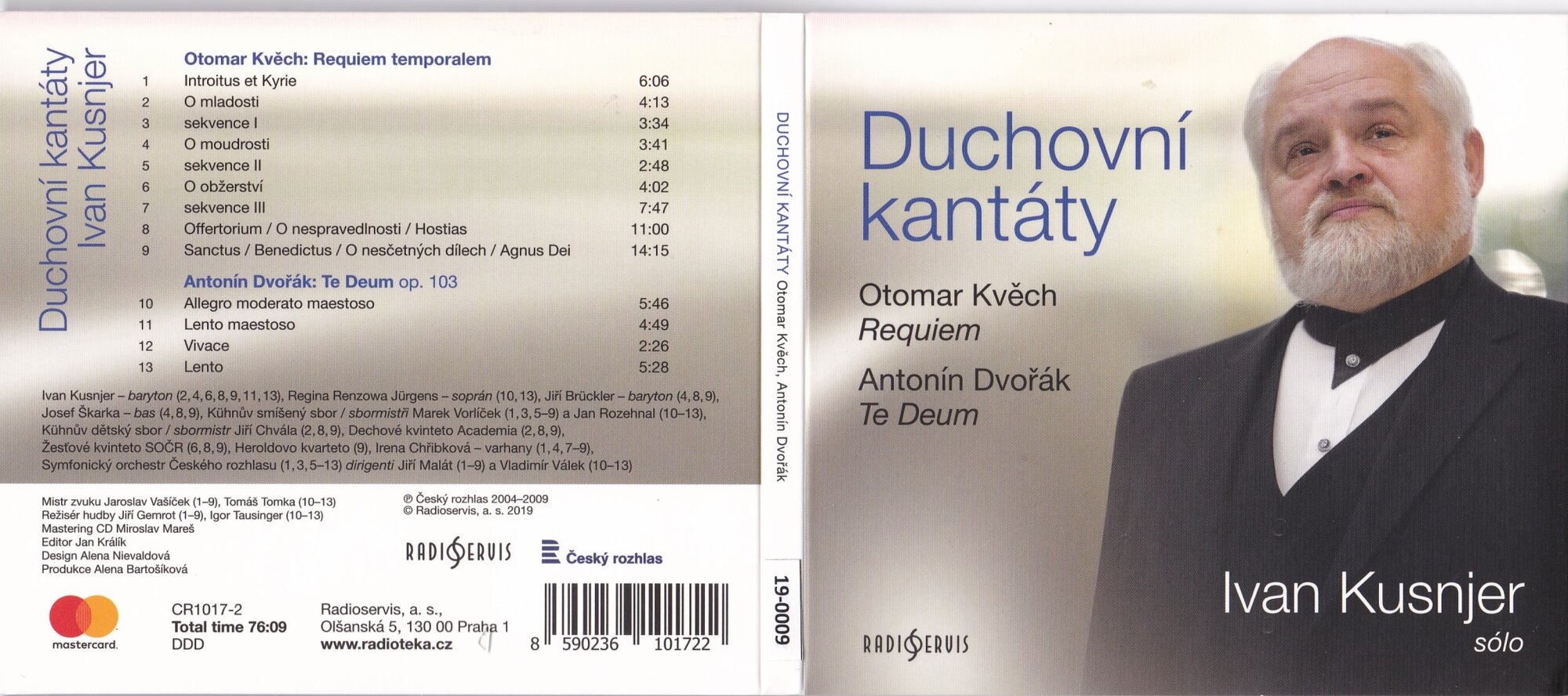 Spojení kantátových děl, mezi jejichž vznikem leží celé století, je na tomto CD možná překvapivé, ale stejně překvapivě sourodé, ač díla sama jsou různá. Dvořák i Kvěch vycházeli z duchovních textů, s nimiž bytostně souzněli. Podněty ke kompozici a sám vznik obou děl se ovšem liší. Dvořák nedočkavě komponoval pro svůj očekávaný vstup do Nového světa. Kvěch naopak po léta vršil vlastní úvahy, pochybnosti a jistotu tvůrčího rozhodnutí. Dvořák volil soprán a baryton, sbor a orchestr. Kvěch ponechal baryton, ale ke sboru a orchestru připojil dva hluboké hlasy, dětský sbor a tři komorní soubory. Liturgický text rozšířil o slova Kazatele a Žalmů. Společné zaznění obou děl promlouvá jako nové, celistvé duchovní sdělení: od pocitů trpkosti, nepochopení a protivenství až k tušení naděje ve smyslu života a k oslavě Toho, jenž sám je nadějí a oporou veškerenstva. Od „marnosti“ po „pouštěj chléb svůj po vodě, po létech najdeš jej“ a vznešené „Tebe, Bože, chválíme.“ Sourodé jsou však nejen navazující směry myšlení, ale i skladatelské přístupy – v obou dílech důsledně zhudebňující obsah, tradiční i nevšední myšlení motivické, melodické, rytmické, harmonicky střídmé i neobvyklé Otomar Kvěch: Requiem temporalem [1] Introitus et Kyrie [2] O mladosti [3] sekvence I [4] O moudrosti [5] sekvence II [6] O obžerství [7] sekvence III [8] Offertorium / O nespravedlnosti / Hostias [9] Sanctus / Benedictus / O nesčetných dílech / Agnus Dei Antonín Dvořák: Te Deum op. 103 [10] Allegro moderato maestoso [11] Lento maestoso [12] Vivace [13] Lento