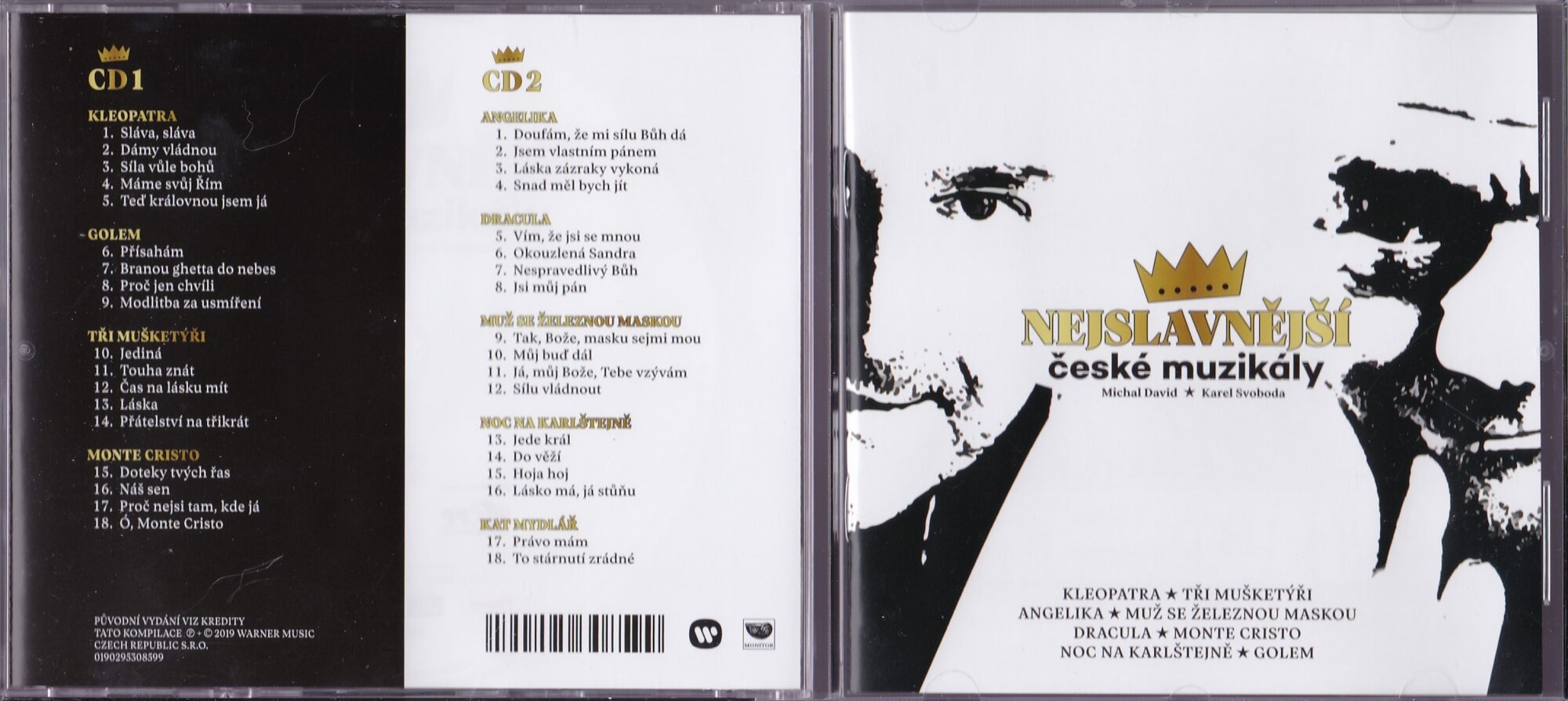 Tracklist: Kleopatra 1.Sláva, sláva 2.Dámy vládnou 3.Síla vůle bohů 4.Máme svůj Řím 5.Teď královnou jsem já Golem 6.Přísahám 7.Branou ghetta do nebes 8.Proč jen chvíli 9.Modlitba za usmíření Tři mušketýři 10.Jediná 11.Touha znát 12.Čas na lásku mít 13.Láska 14.Přátelství na třikrát Monte Cristo 15.Doteky tvých řas 16.Náš sen 17.Proč nejsi tam, kde já 18.Ó, Monte Cristo CD 2 Angelika 1.Doufám, že mi sílu Bůh dá 2.Jsem vlastním pánem 3.Láska zázraky vykoná 4.Snad měl bych jít Dracula 5.Vím, že jsi se mnou 6.Okouzlená Sandra 7.Nespravedlivý Bůh 8.Jsi můj pán Muž se železnou maskou 9.Tak, Bože, masku sejmi mou 10.Můj buď dál 11.Já, můj Bože, Tebe vzývám 12.Sílu vládnout Noc na Karlštejně 13.Jede král 14.Do věží 15.Hoja hoj 16.Lásko má, já stůňu Kat Mydlář 17.Právo mám 18.To stárnutí zrádné