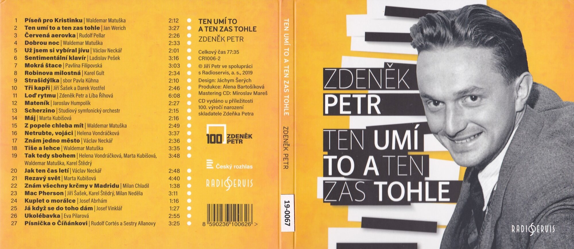 CD vydáno u příležitosti 100. výročí narození skladatele Zdeňka Petra Píseň pro Kristinku | Waldemar Matuška Ten umí to a ten zas tohle | Jan Werich Červená aerovka | Rudolf Pellar Dobrou noc | Waldemar Matuška Už jsem si vybíral jívu | Václav Neckář Sentimentální klavír | Ladislav Pešek Mokrá štace | Pavlína Filipovská Robinova milostná | Karel Gult Strašidýlka | sbor Pavla Kühna Tři kapři | Jiří Šašek a Darek Vostřel Loď rytmu | Zdenek Petr a Líba Říhová Mateník | Jaroslav Humpolík Scherzino | Studiový symfonický orchestr Máj | Marta Kubišová Z popele chleba mít | Waldemar Matuška Netrubte, vojáci | Helena Vondráčková Znám jedno město | Václav Neckář Tiše a lehce | Waldemar Matuška Tak tedy sbohem | Helena Vondráčková, Marta Kubišová, Waldemar Matuška, Karel Štědrý Jak ten čas letí | Václav Neckář Rezavý svět | Marta Kubišová Znám všechny krčmy v Madridu | Milan Chladil Mac Pherson | Jiří Šašek, Karel Štědrý, Milan Neděla Kuplet o morálce | Josef Abrhám Já když se do toho dám | Josef Vinklář Ukolébavka | Eva Pilarová Písnička o Číňánkovi | Rudolf Cortés a Sestry Allanovy
