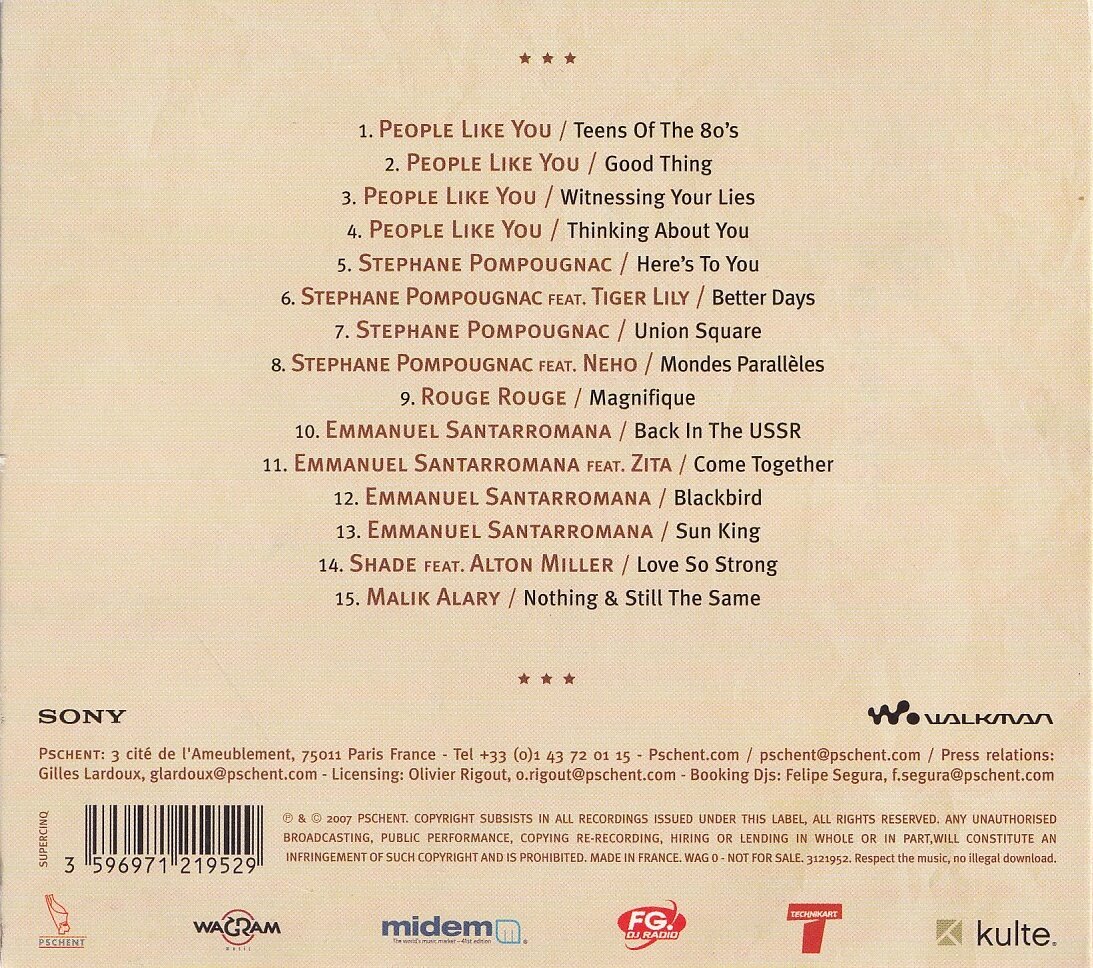 Kompilace vydaná v roce 2007 jako součást promo akce na festivalu Midem. Album obsahuje směs stylů, jako je leftfield, europop, downtempo a ballad, a představuje tvorbu umělců, jako jsou People Like You, Stephane Pompougnac, Emmanuel Santarromana a další.