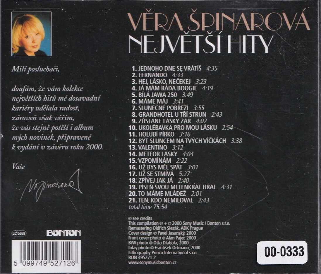 | Interpret: | Věra Špinarová |