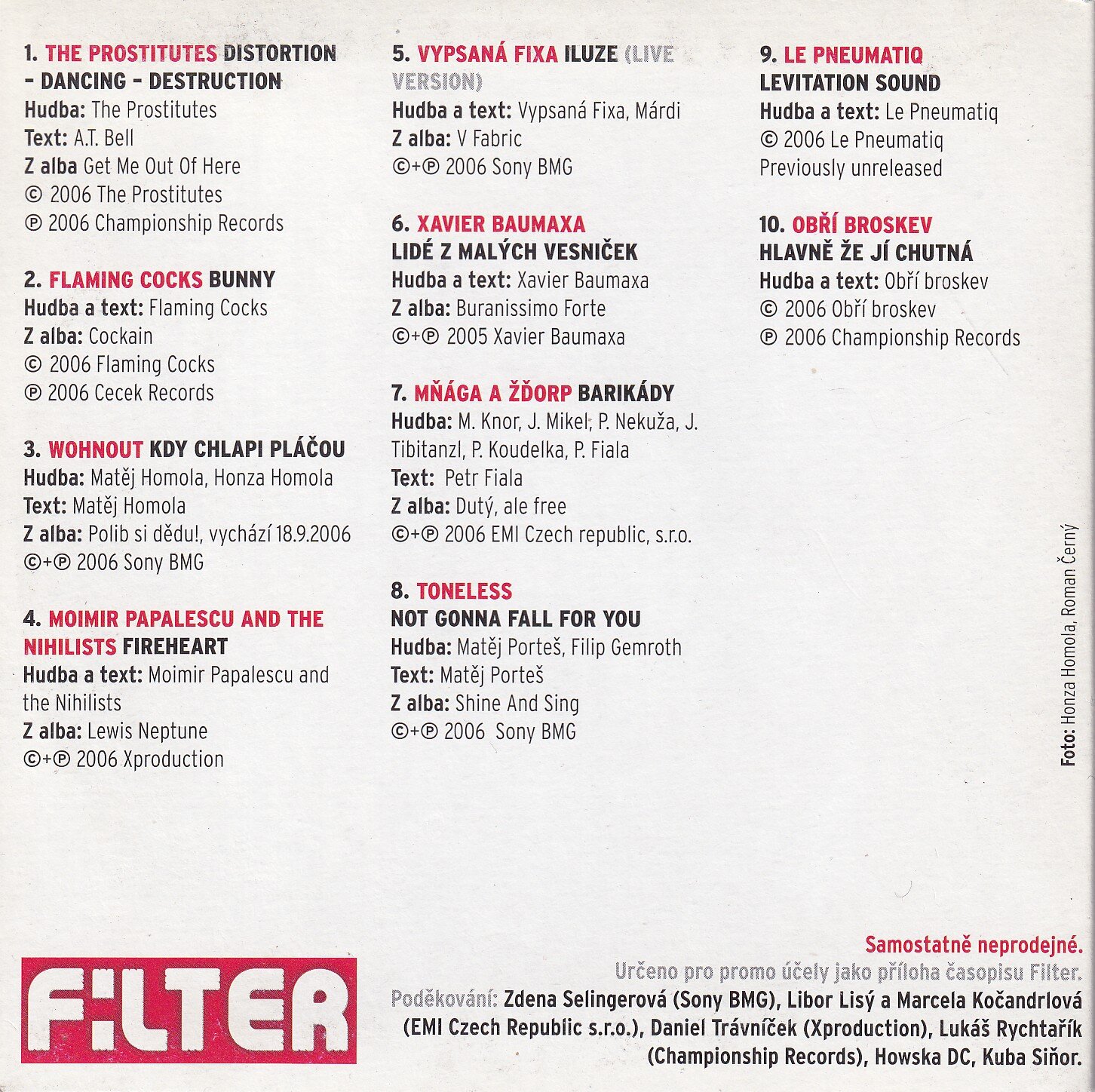 Album "FILTER PLAYLIST - ŘÍJEN 2006" bylo vydáno v září 2006 jako promo kompilace s výběrem aktuální hudby. Jedná se o přílohu spojenou s magazínem FILTER, která obsahuje skladby různých interpretů a žánrů, a je zaměřena na podporu hudební scény a prezentaci novinek posluchačům.