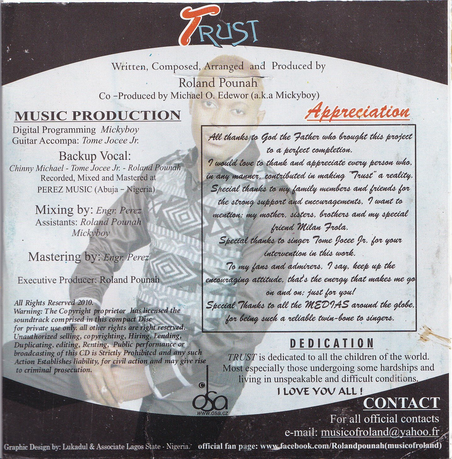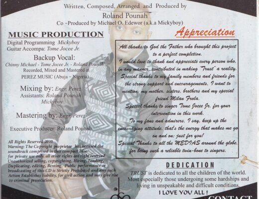 Album Trust od Rolanda Pounaha přináší poselství víry a naděje. Vydané v roce 2010, obsahuje 10 skladeb, které se vyznačují harmonickými melodiemi a výraznou produkcí. Spolupracovali na něm také Tome Jocee Jr. a Chinny Michael. Nahrávky byly vytvořeny v Perez Music Studios v Nigérii.