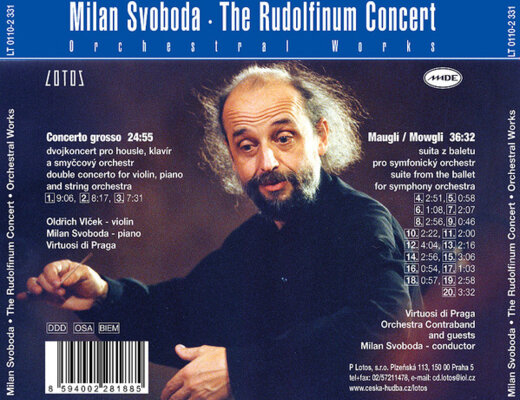 Album Rudolfinum Concert / Orchestral Works představuje unikátní kombinaci jazzových a orchestrálních kompozic pod taktovkou Milana Svobody. Nahrávka zahrnuje jak velkolepé Concerto grosso s výrazným houslovým sólem Oldřicha Vlčka, tak hudbu inspirovanou Mauglího příběhem. Spojení orchestru Virtuosi Di Praga a Orchestra Contraband vytváří jedinečný hudební zážitek plný dynamiky a emocí.
