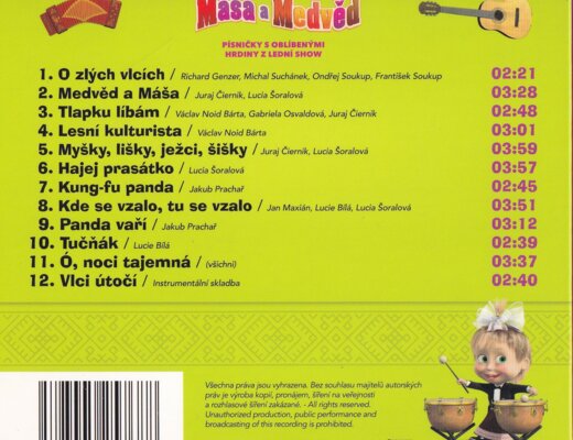 Album Máša a Medvěd - Písničky z lední show přináší originální skladby inspirované oblíbenými postavami animovaného seriálu. Skladby jsou veselé a zábavné, ideální pro celou rodinu.