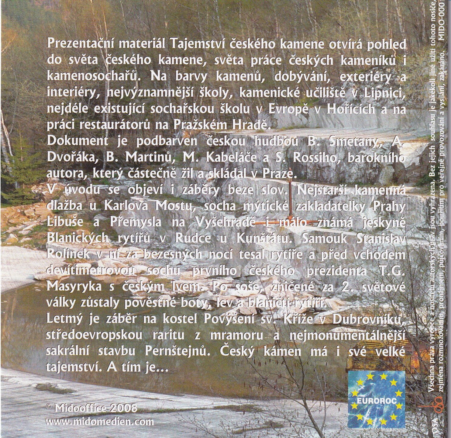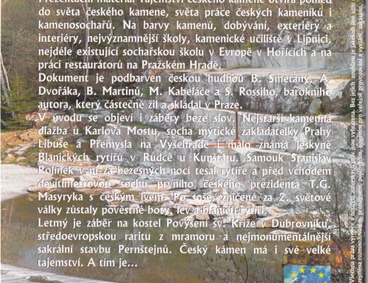 Dokument přináší pohled do světa českého kamene a práce kameníků a sochařů. Zabývá se historií těžby, zpracováním a významnými stavbami v Česku i zahraničí. Film obsahuje záběry historických památek a významných děl českého kamenictví, podbarvené hudbou českých skladatelů.