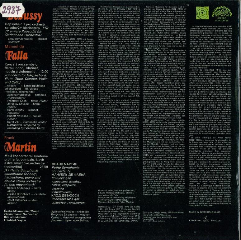 Martin - Petite symhonie concertante, Falla - Harpsichord concerto, Debussy - Premiere rapsodie