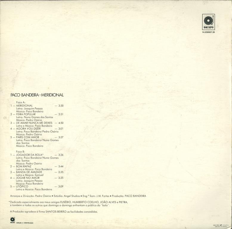 MeridionalFeira PopularDe Amar Nunca Me DeixesAgora Vou DizerParis Com AmorJogador Da BolaBom RapazBanda De AmizadeJogar No AmorUtópico