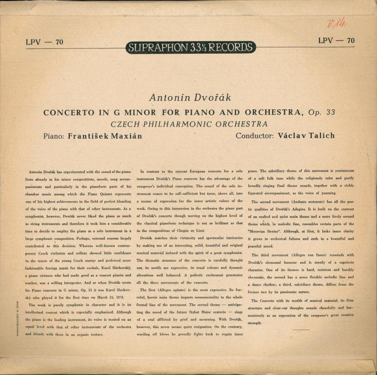 Concerto In G Minor For Piano And Orchestra Op. 33 - Dvořák