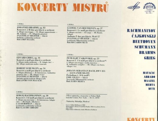 Koncerty mistrů - Brahms, Grieg, Schumann, Rachmanikov, Beethoven, Čajkovskij, Bach