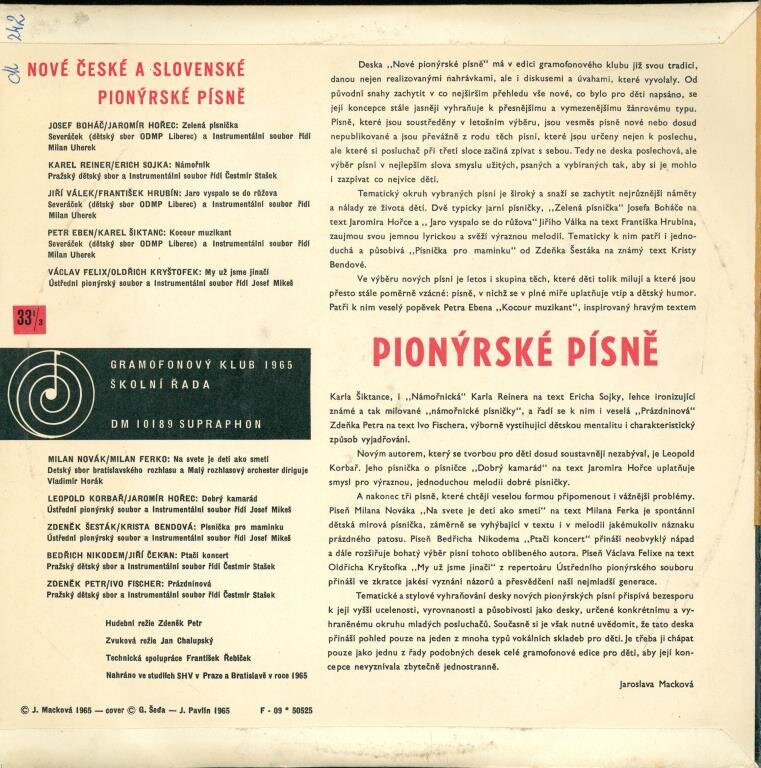 Pražský dětský sbor, Ústřední pionýrský soubor, Dětský sbor Bratislavského rozhlasu, Malý rozhlasový orchestr, Pražský dětský sbor a Instrumentální soubor a další