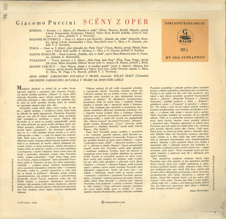 Bohéma Madama Butterfly Tosca Gianni Schicchi Turandot Manon Lescaut