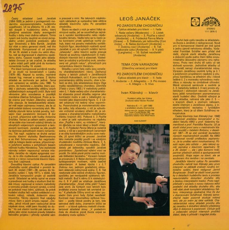 On The Overgrown Path. Cycle Of Compositions For Piano, Set 1Our Evenings (Moderato)A Leaf Gone With The Wind (Andante)Come With Us! (Andante)The Holy Virgin Of FrýdekTwittering Swallows (Con Moto)Unfinished Talk (Andante)Good Night! (Andante)Torturing Anxiety (Andante)In Tears (Larghetto)The Bird Of III Omen Lingers On (Andante)Tema Con Variazioni (Zdeňkas Variations) For PianoOn The Overgrown Path. Cycle Of Compositions For Piano, Set 2AndanteAllegrettoPiù MossoAllegroVivo