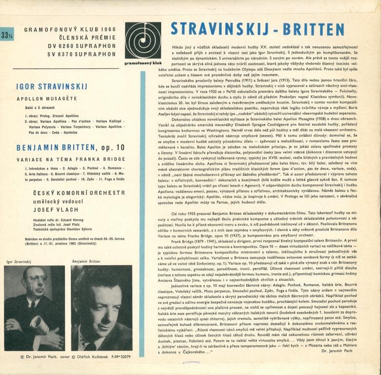 Igor Stravinsky - Apollo Musagete, Benjamin Britten - Variace na téma F. Bridge