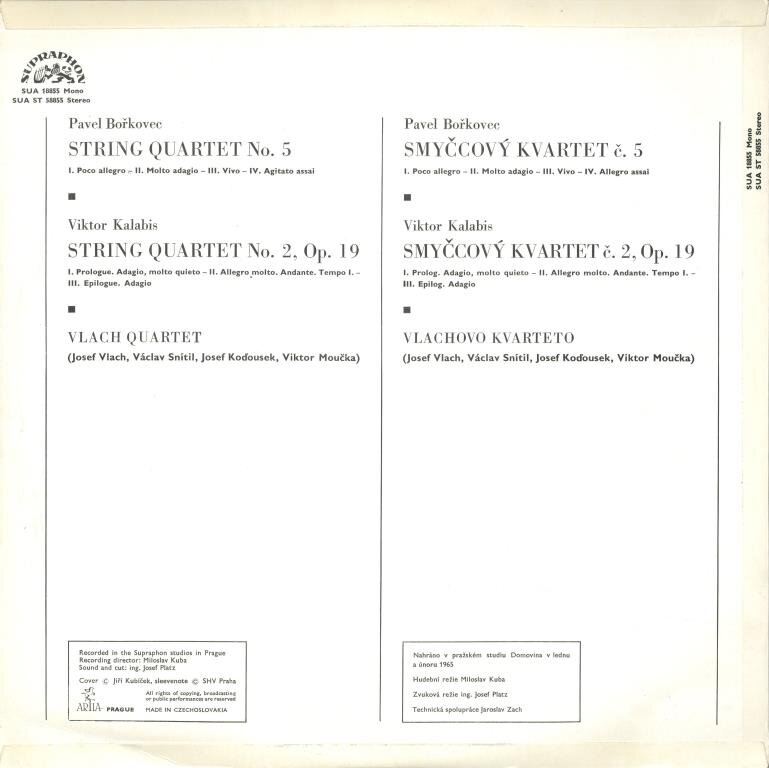 Pavel Bořkovec - String quartet No. 5, Viktor Kalabis - String quartet No. 2