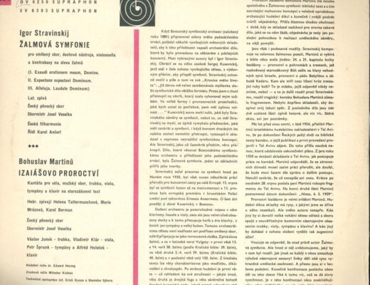 Igor Stravinkij - Žalmová symfonie, Bohuslav Martinů - Proroctví Iziášovo