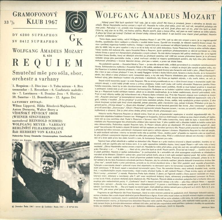1. Requiem 2. Dies Irae 3. Tuba Mirum 4. Rex Tremendae 5. Recordare 6. Confutatis 7. Lacrimosa 8. Domine Jesu 9. Hostias 10. Sanctus 11. Benedictus 12. Agnus Dei