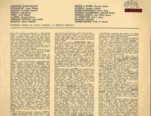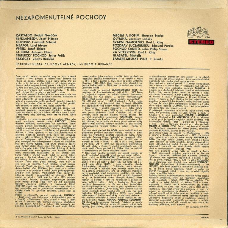 Josef Pičman, František Schmid, Luigi Musso, Josef Biskup, Antonio Chero, Julius Fučík, Václav Růžička, Jaroslav Labský, Edmund Patzke, John Philip Sousa, Ústřední hudba Čs. lidové armády