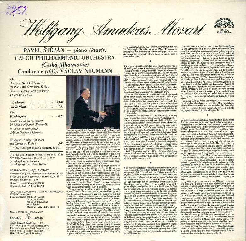 Mozart, Pavel Štěpán, Czech Philharmonic Orchestra, Václav Neumann