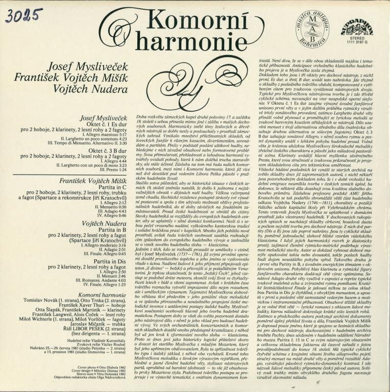 Komorní harmonie - Josef Mysliveček, František V. Mišík, Vojtěch Nudera