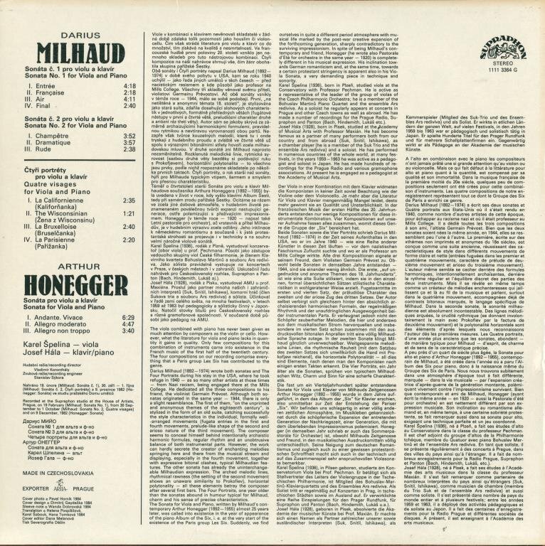 Milhaud - quatre visages sonatas, Honegger - Sonata