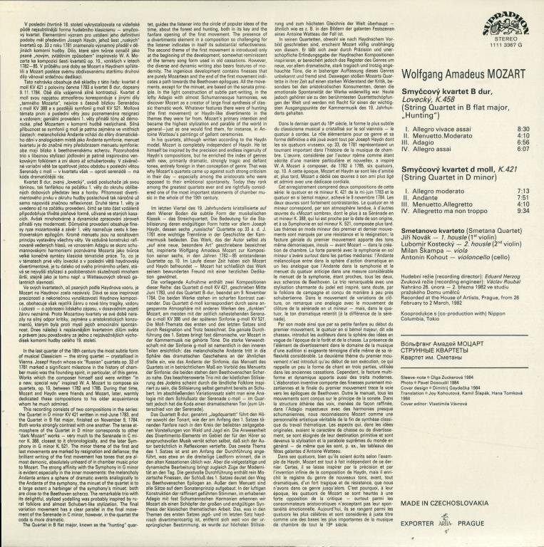 Mozart, Smetana Quartet