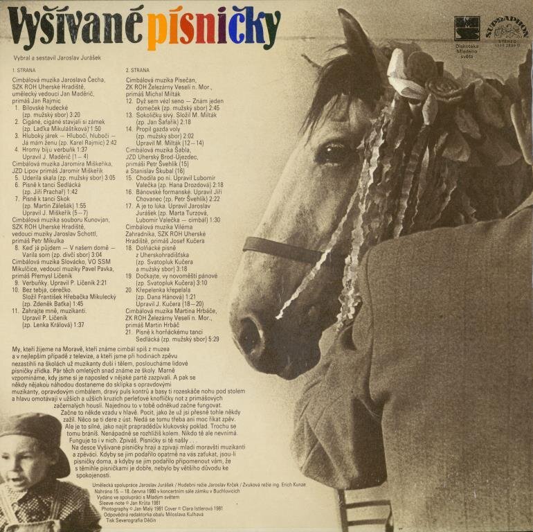 Cimbálová muzika Jaromír Miškeřík. Mužský sbor, Laďka Mikuláštíková a další