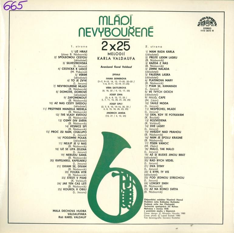 Společnou cestou, Silvestrovská, Cestička k lásce, Věřím, To je zvyk, Nevybouřené mládí, Domove, domove, Zapomenout, Až nás cesty svedou, Prstýnek manžela nedělá, Tvé vlasy kvetou, Osmý div světa, Vesnice spí, Proč jsi nám, chalupo, Podzimní polka, Nejlíp je u nás, Už se lípa zelená, Nebudu sama, Kapelníku, kapelníku, Dívám se, dívám, Fouká vítr, Štěstí v písni, Jak ten čas letí, Koukol v obilí, Mám ráda Karla, Přejte lidem lásku, Každá z nás, Zimní nálada, Falešná láska, Platinová Mary, Ptám se, kamarádi, Ve tvých očích, Haló, čápe, Tahle móda, Nespěchej, mládí, Den, kdy tě potkávám, Rozvedená, Dvě lásky, Hvězdy nad Prahou, Nám je spolu krásně, Píseň Vánoc, Málo, tak málo, Až si budeš jinou brát, Rád bych věděl, Dva stíny, S kým, ty víš, Pod jednou střechou, Loňský sníh, Až na konci světa