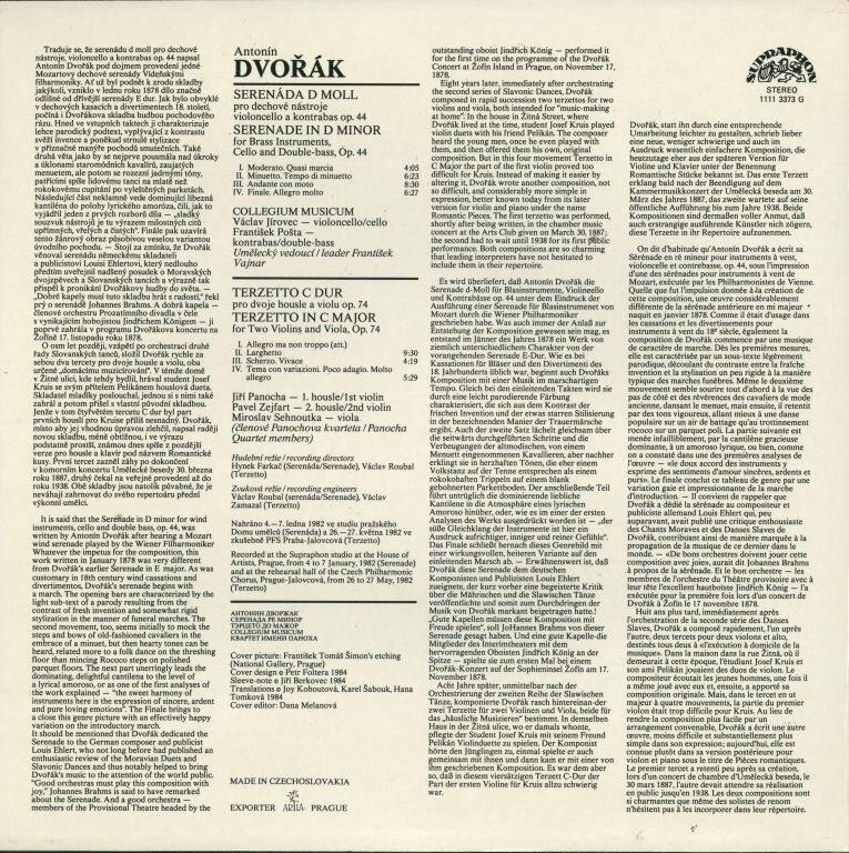 | Interpret: | Antonín Dvořák, Collegium Musicum Pragense, Panocha Quartet Members, František Vajnar |