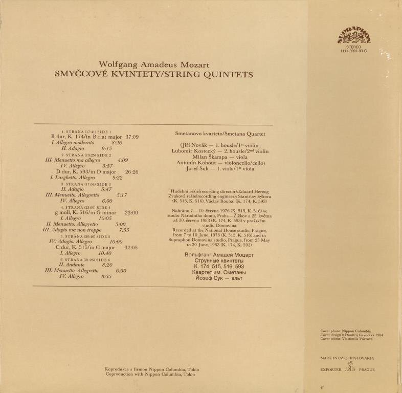 | Interpret: | Mozart, Smetana Quartet, Josef Suk |