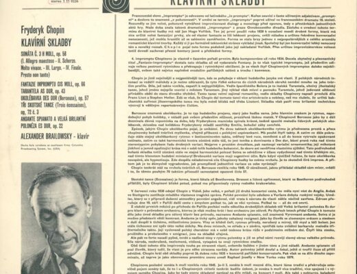 Fantazie impromptus cis moll, Tarantela As dur, Ukolébavka Des dur, Tři skotské tance, Andante spinato a velká brilantní polonéza Es dur