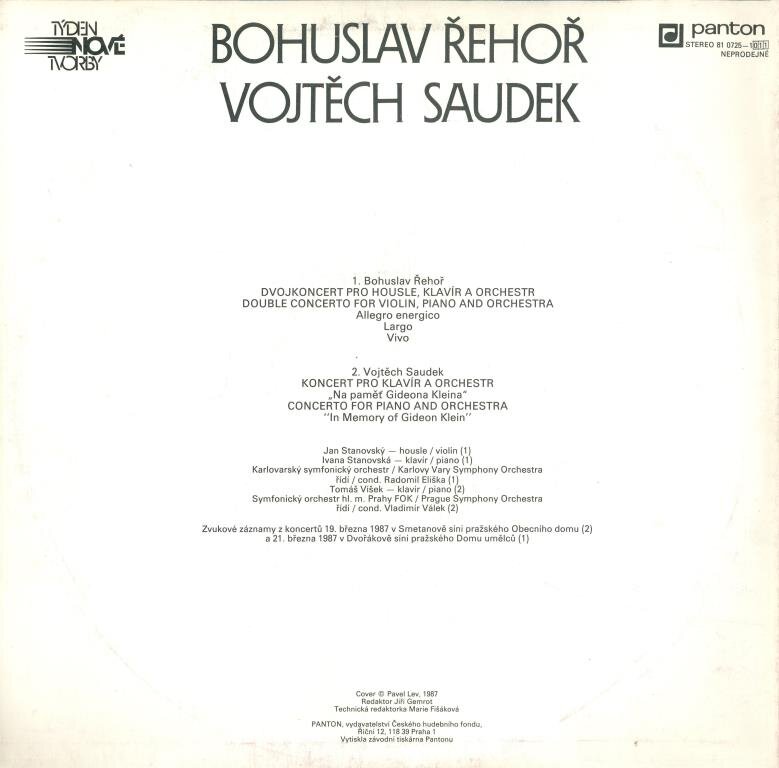 Double concerto for violin, piano and orchestra, Concerto for piano and orchestra, In my memory of Gideon Klein