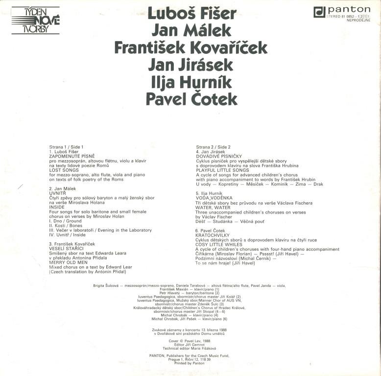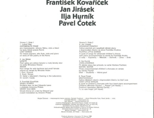 Zapomenuté písně, Uvnitř, Veselí staříci, Dovádivé písničky, Voda, voděnka, Kartochvilky
