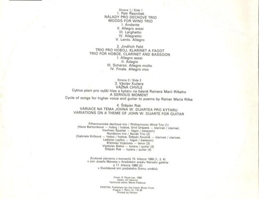 Moods for wind trio, Trio for hoboe, clarinet and bassoon, A serious moment, Variations on a theme of John W. Duarte