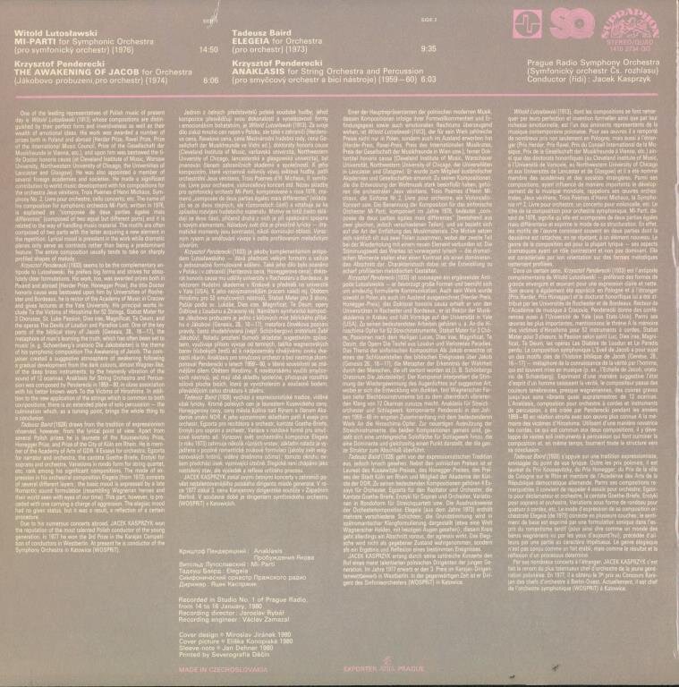 Mi-Parti For Symphonic Orchestra (Pro Symfonický Orchestr)The Awakening Of Jacob For Orchestra (Jákobovo Probuzení, Pro Orchestr)Elegeia For Orchestra (Pro Orchestr)Anaklasis For String Orchestra And Percussion (Pro Smyčcový Orchestr A Bicí Nástroje)