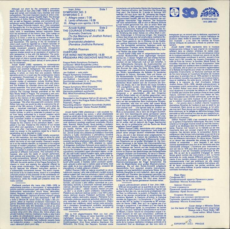 Ivan Jirko - Symphony No.3, Arnošt Košťál - The courage stanzas, Oldřich Flosman - Overture