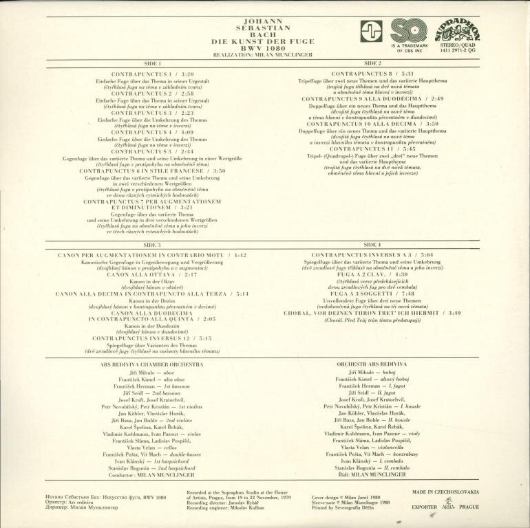 Contrapunctus 1Contrapunctus 2Contrapunctus 3Contrapunctus 4Contrapunctus 5Contrapunctus 6 In Stile FranceseContrapunctus 7 Per Augmentationem Et DiminutionemContrapunctus 8Contrapunctus 9 Alla DuodecimaContrapunctus 10 Alla DecimaContrapunctus 11Canon Per Augmentationem In Contrario MotuCanon Alla OttavaCanon Alla Decima In Contrapuncto All TerzaCanon Alla Duodecima In Contrapuncto Alla QuintaContrapunctus Inversus 12Contrapunctus Inversus A 3Fuga A 2 Clav.Fuga A 3 SoggettiChoral. Vor Deinen Thron Tret Ich Hiermit