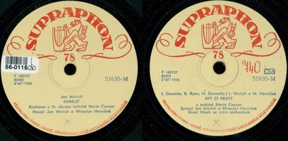 Jan Werich, Miroslav Horníček, Karel Vlach se svým orchestrem