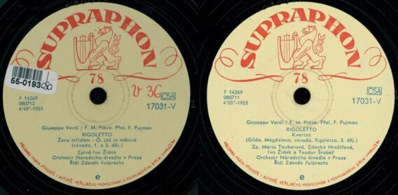 Maria Tauberová, Zdenka Hrnčířová, Ivo Židek, Teodor Šrubař, Orchestr Národního divadla v Praze, Zdeněk Folprecht