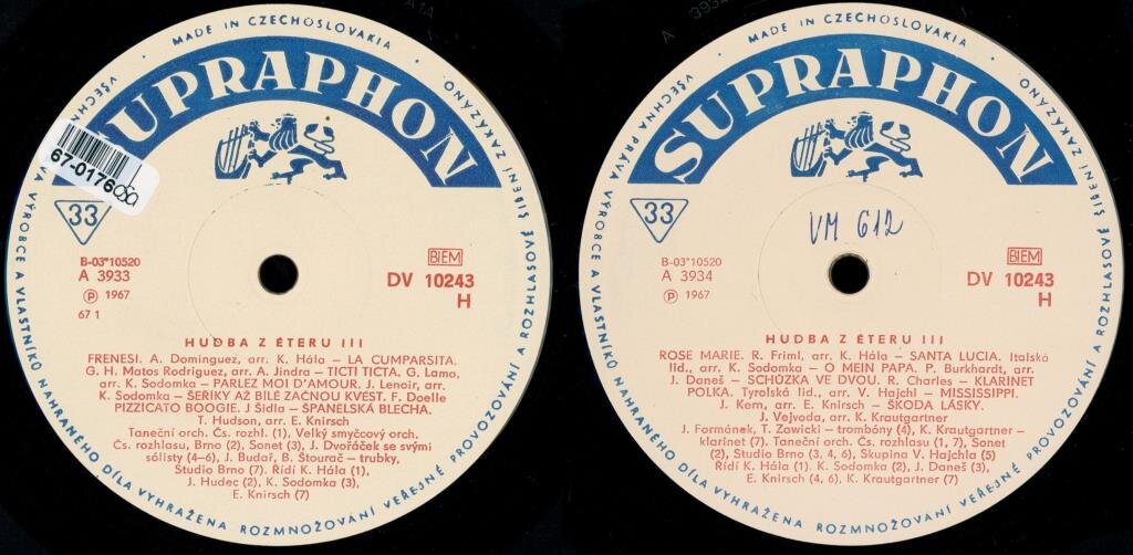 J. Formánek, T, Zawicki, K. Krautgartner, Taneční orchestr Čs. rozhlasu, Sonet, Studio Brn, Skupina V, Hajchla