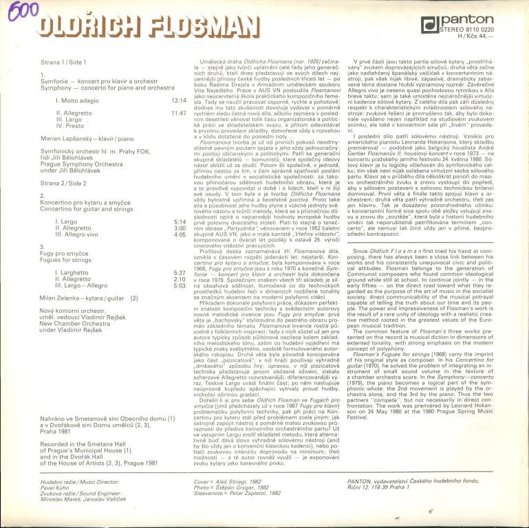 Oldřich Flosman - Symfonie - Koncert pro klavír a orchestr, Koncertino pro kytaru a smyčce, Fugy pro smyčce