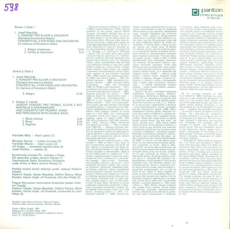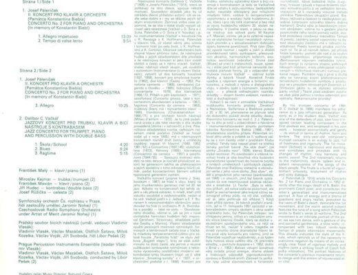 Josef Páleníček - II. koncert pro klavír a orchestr, Dalibor C. Vačkář - Jazzový koncert pro trubku, klavír a bicí nástroje s kontrabasem