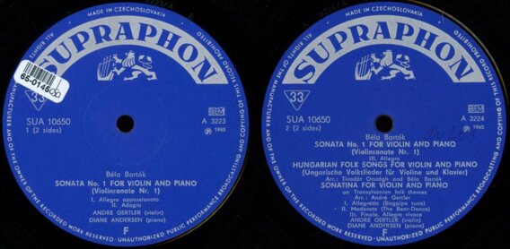 Sonata No. 1 for violin nad piano, Hungarian folk songs for violin and piano, Sonatina for violin and piano