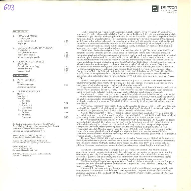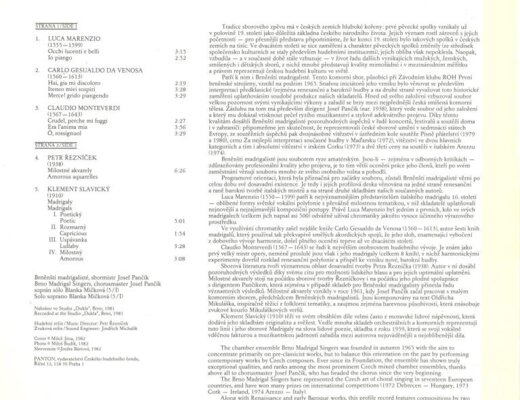 Brněnští madrigalisté - Marenzio, Gesualdo da Venosa, Monteverdi, P. Řezníček, K. Slavický