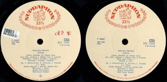 L. Domanínskó, S. Červená, L. Havlók, L. Mráz, Český pěvecký a Kúhnův dětský sbor, J. Kuhn, Česká filharmonie, Karel Ančerl