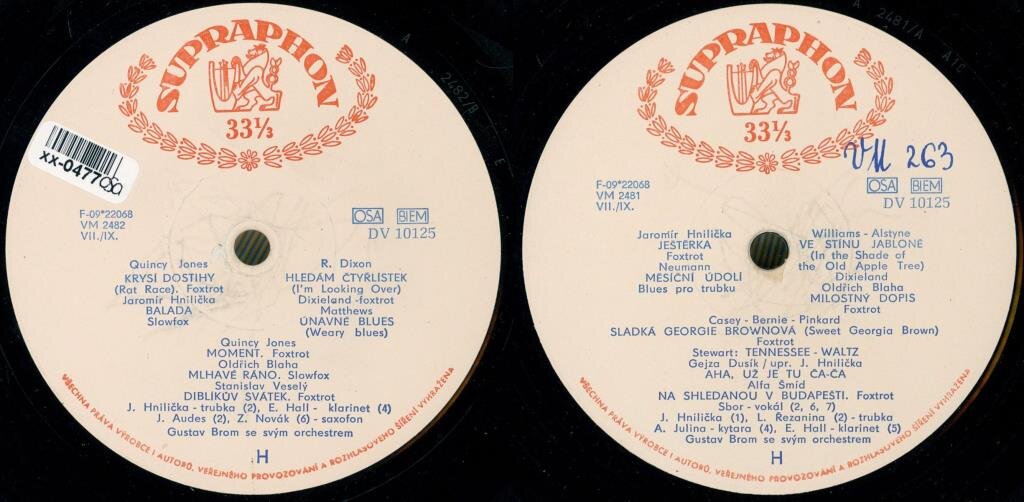 | Interpret: | J. Hnilička, E. Hall, J. Audes, Z. Novák, Gustav Brom se svým orchestrem |