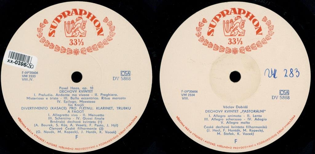 Dechový kvintet - Divertimento (Kasace) pro flétnu, klarinet, trubku a fagot